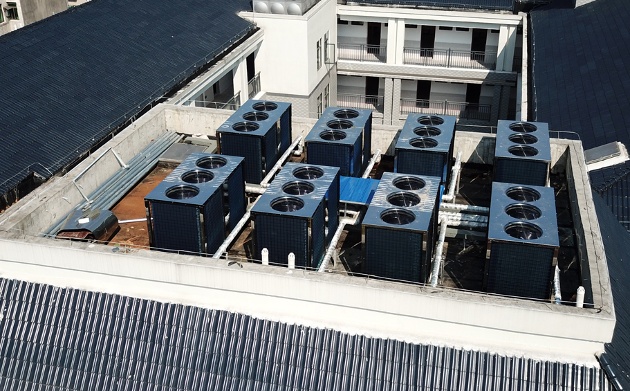 湖南省常德市第一中学空气能热水工程采用碧涞RB-72K(20匹)空气源热泵热水机16台,满足该大学约3000名师生每天的热水需求,机组运行至今安全稳定、节能低耗,得到校方领导及师生的一致认可。