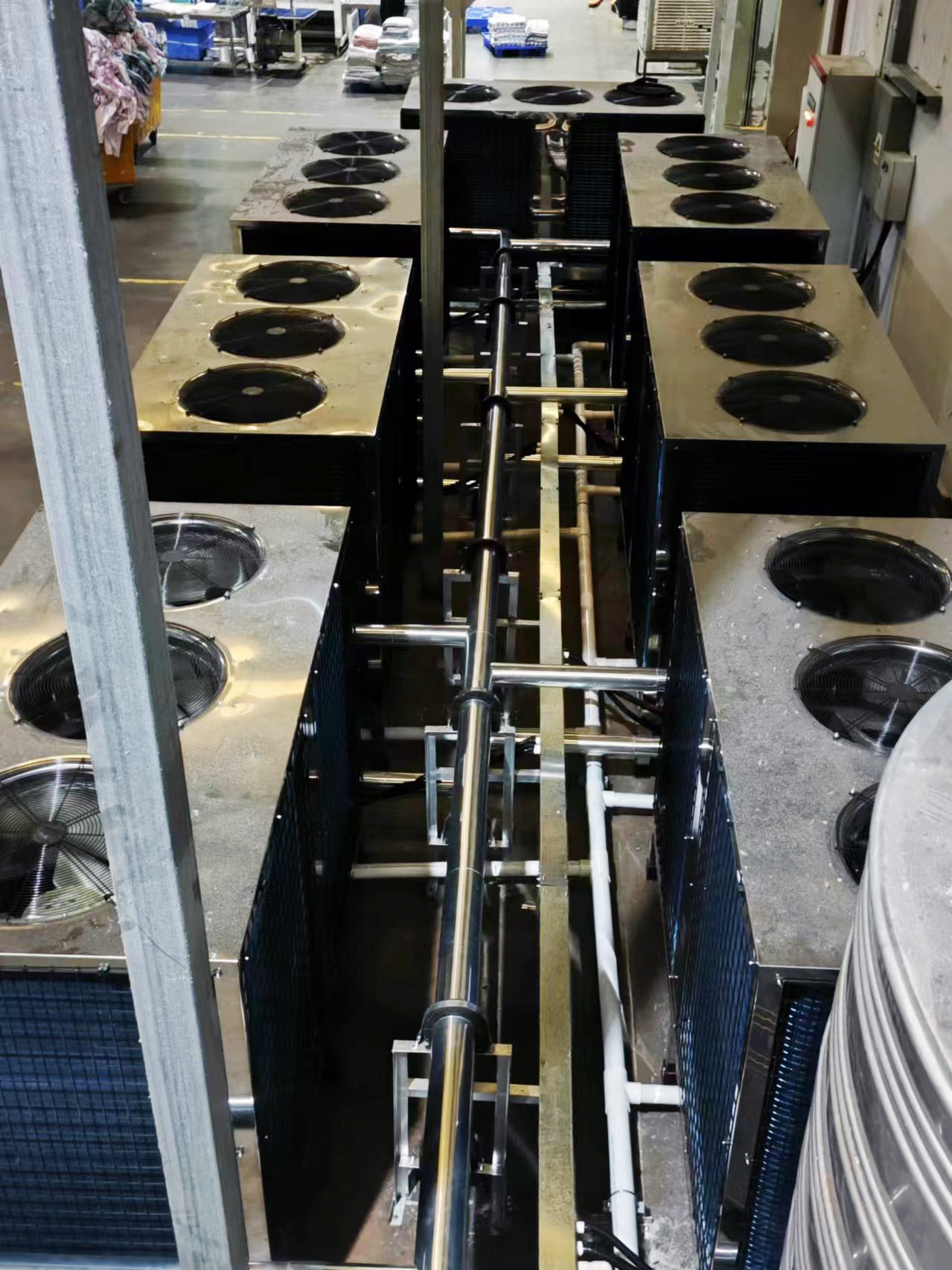 这是一家大型的特种布草洗涤厂,洗涤部分采用碧涞中高温热泵热水机,采用晚上低谷电生产75度的热水用于洗涤,节能比例达70%以上。烘干采用碧涞特高温热泵型烘干机,每公斤布草烘干用电仅0.2度,按平均每度电0.7元计算,相当于蒸汽价格约160元/吨。