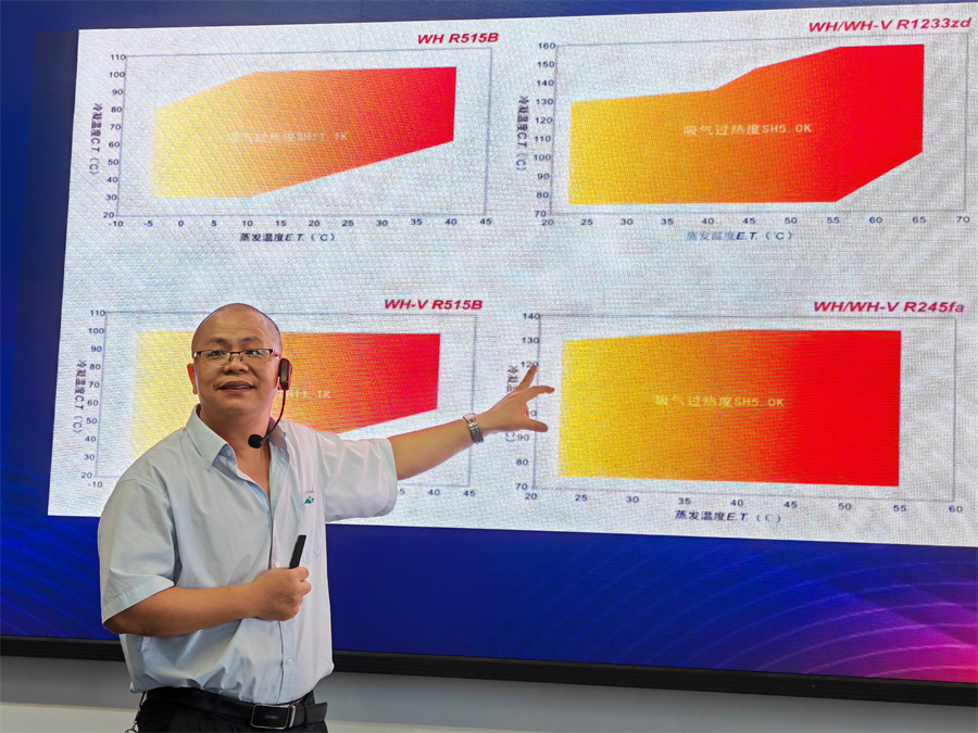 会议上,热泵产品巴的丁升寰巴长,就如何打造高温热泵第一品牌进行了精彩的演讲,深入分析了行业的发展趋势和公司的竞争优势。